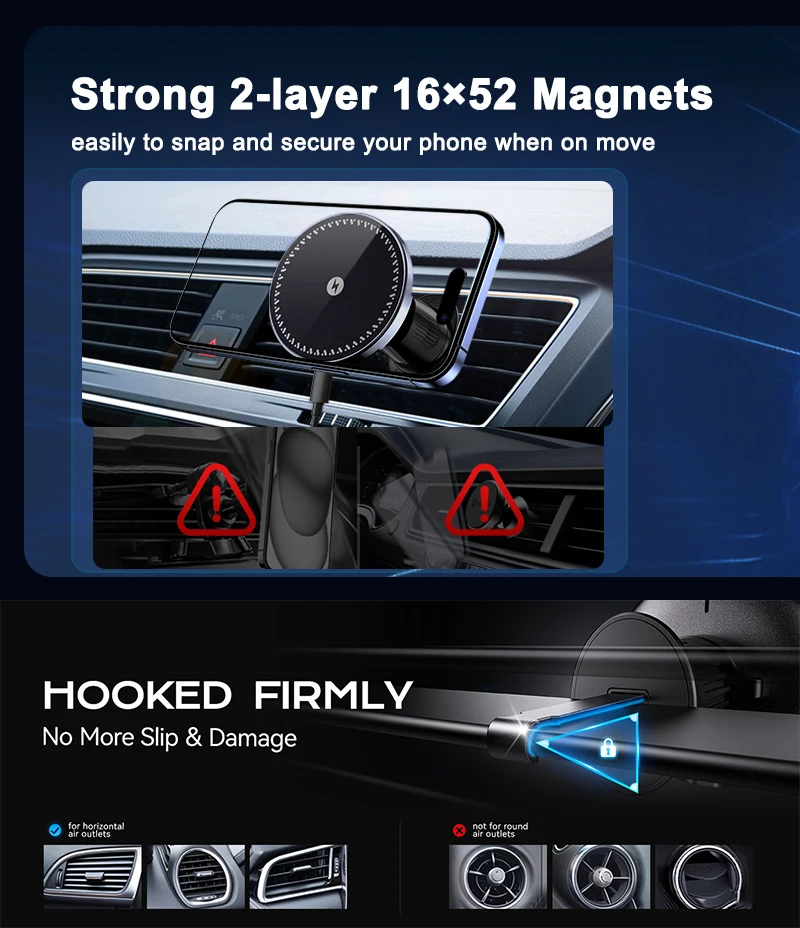 UYUXIO 15W Fast Charging Magnetic Wireless Car Charger Air Vent Car Mount Phone Holder for iPhone 17 16 15 14 13 Pro Max 12
